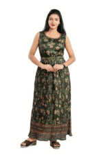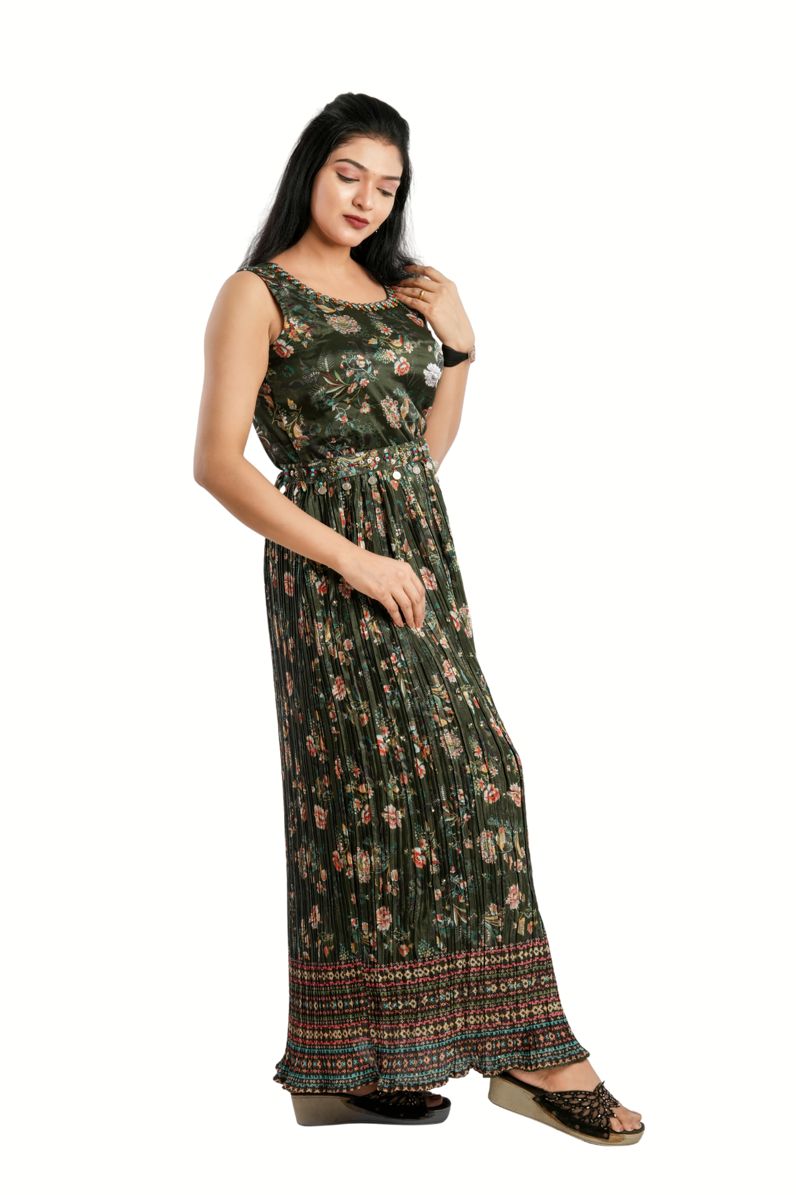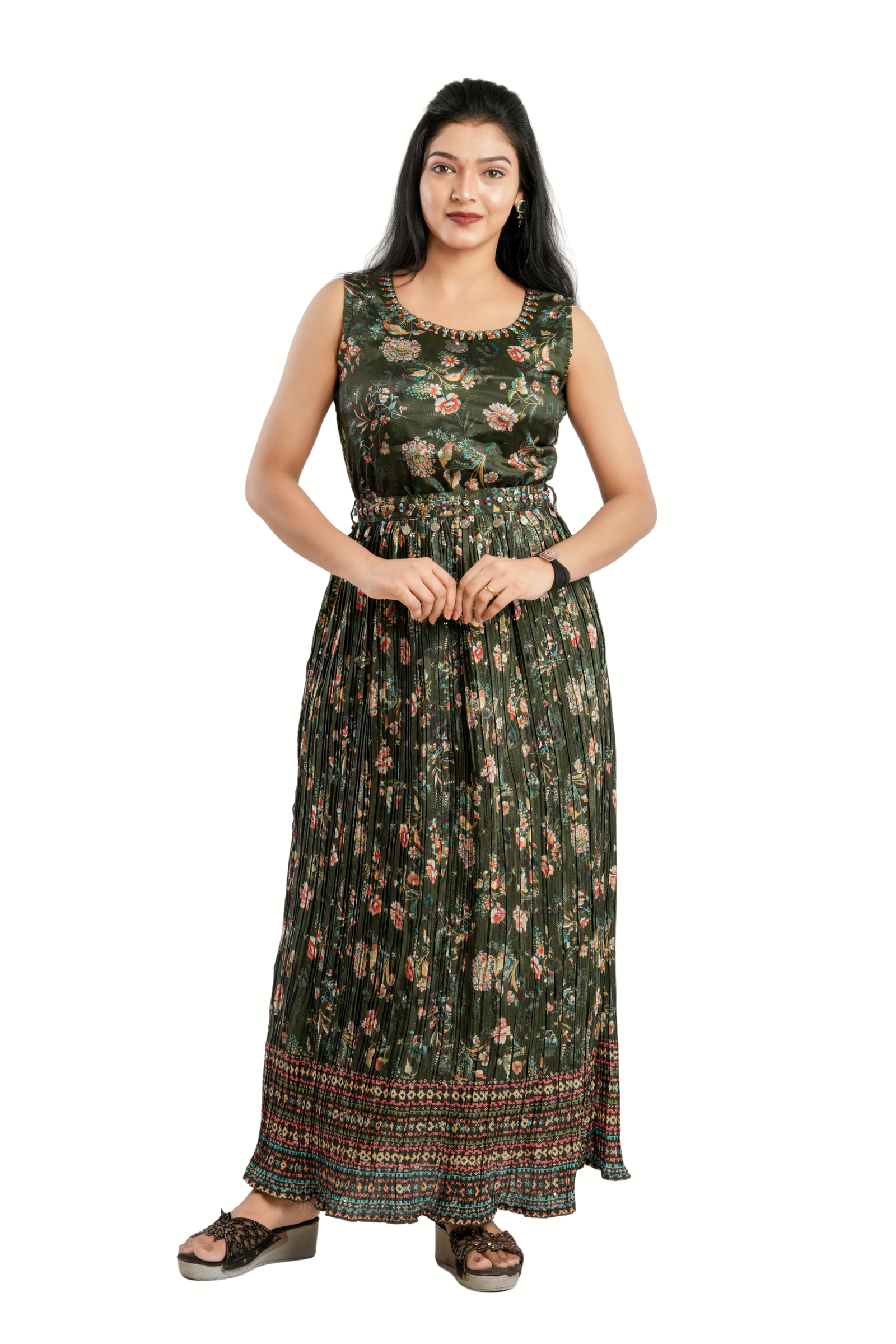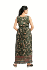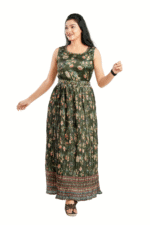Green colour crushed Flared dress Pattern – kalamkari floral digital print