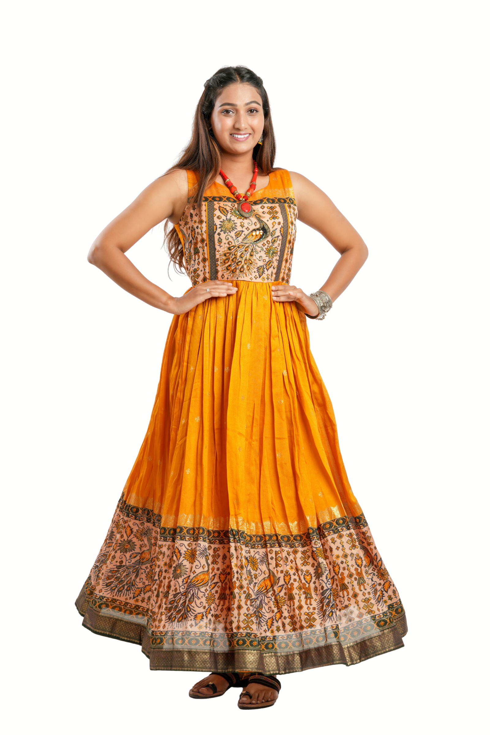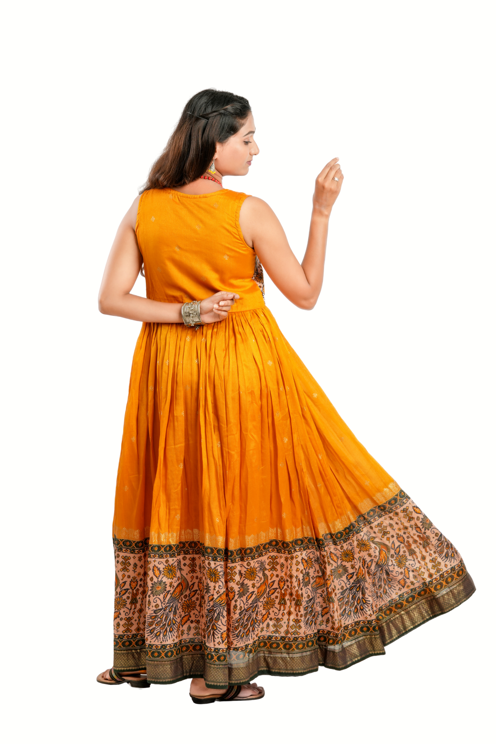 Brighten your day with this mustard yellow long dress made from luxurious Maslin silk. Beautifully detailed with delicate handwork, this piece is a graceful blend of traditional craftsmanship and contemporary silhouette.