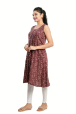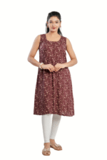 Turn heads with this maroon fit gown made from soft and breathable rayon fabric. Designed to accentuate your silhouette, it’s a blend of comfort and style for festive gatherings or elegant evenings.