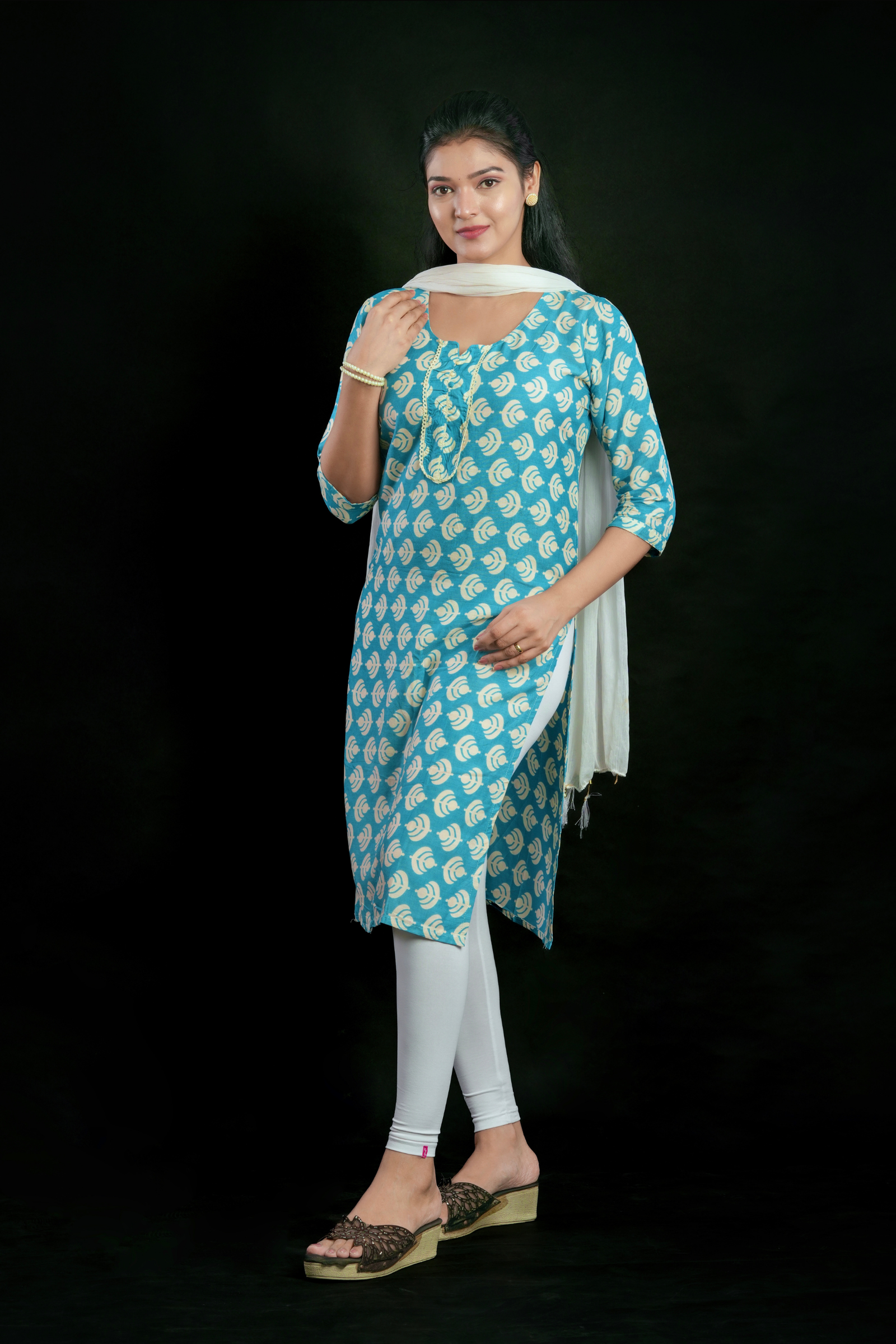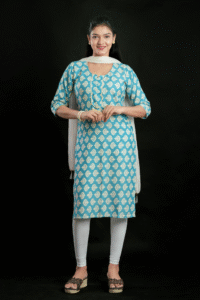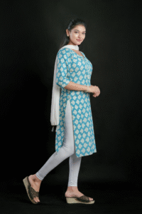 Cool and comfy, this sky blue slab cotton kurti in a straight-cut pattern is perfect for everyday wear. Soft fabric and minimalistic design make it a versatile pick for office, college, or casual outings.